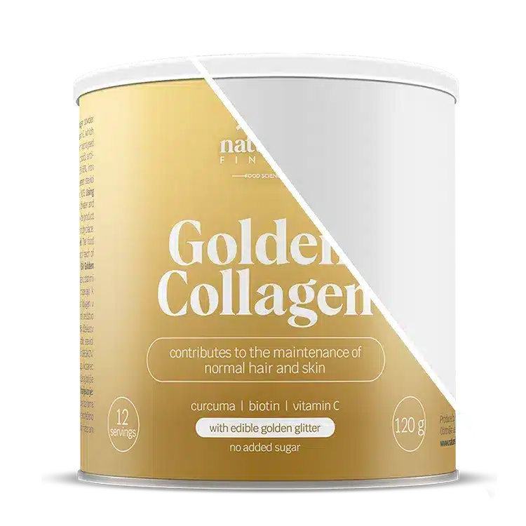 Golden Collagen kombinerer hydrolyseret kollagen og kraftfulde ingredienser som biotin, gurkemeje, spiseligt gyldent glimmer og vitaminer, der bidrager til normal dannelse af kollagen² og hjælper med at bevare en sund hud⁴.