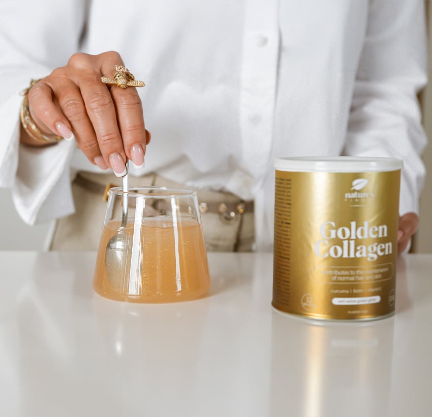 I modsætning til almindelige kollagentilskud opløses vores Golden Collagen i en smuk gylden glans, hvilket gør det daglige kollagenindtag til et luksuriøst ritual.