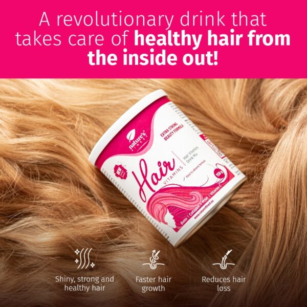 Biotin (vitamin B7) er et af de vigtigste vitaminer til vedligeholdelse af normalt hår og endda hud, og derfor er det uundværligt i kosttilskud til smuk hud og hår. Vores drik indeholder hele 450 μg biotin pr. måleske.